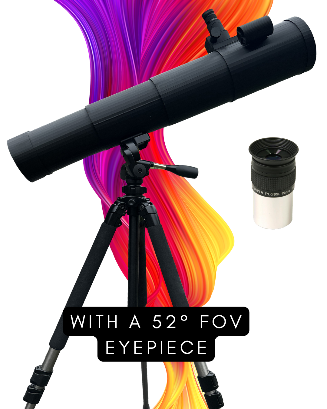 Great you asked! Cassi has a 6” diameter primary mirror. It collects enough light to reveal many celestial objects, including nebulae, galaxies, and star clusters, while remaining portable and easy to use.